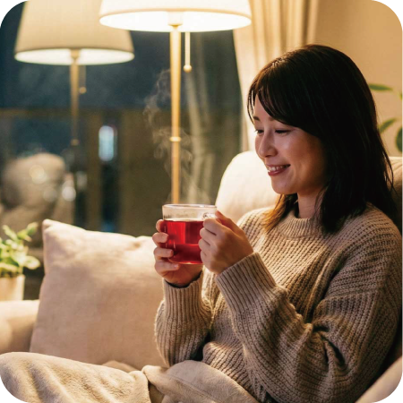 忙しい毎日の中でほっとひと息つきたいときに、温かくして飲めば、からだがやさしく温まり、心も穏やかに落ち着く時間を演出してくれます。
